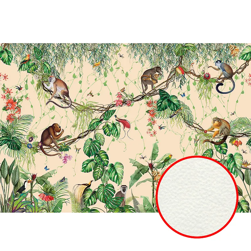 Фреска Ortograf Miracle 33860 Фактура флок FLK Флизелин (4*2,7) Бежевый/Разноцветный, Листья/Животные