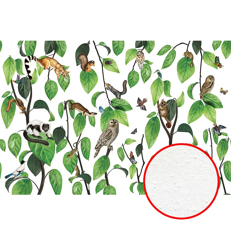 Фреска Ortograf Miracle 33862 Фактура бархат FX Флизелин (4,5*3) Белый/Зеленый, Листья/Животные/Птицы