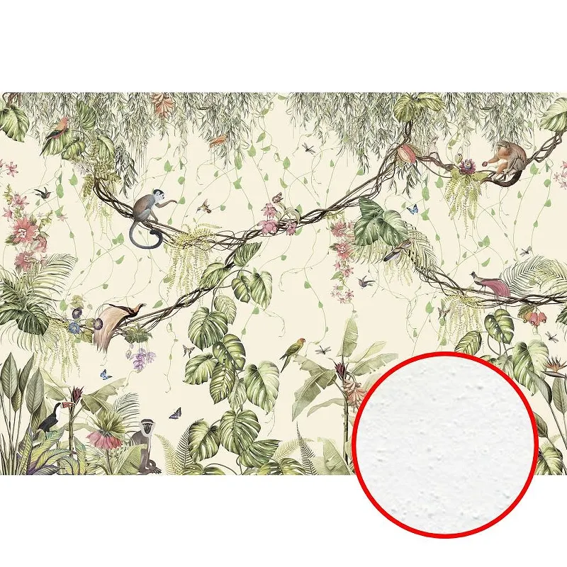Фреска Ortograf Miracle 33868 Фактура бархат FX Флизелин (4*2,7) Бежевый/Разноцветный, Листья/Животные/Птицы