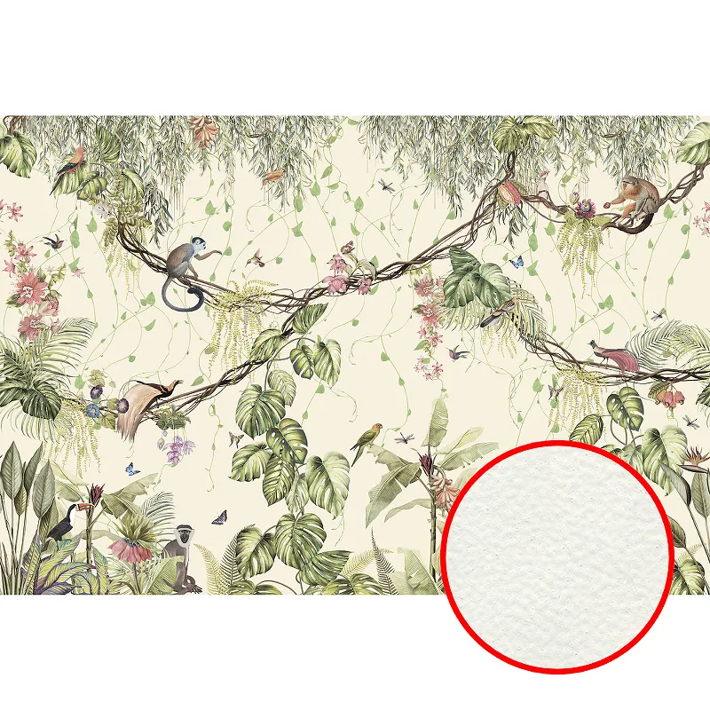 Фреска Ortograf Miracle 33868 Фактура флок FLK Флизелин (4*2,75) Бежевый/Разноцветный, Листья/Животные/Птицы
