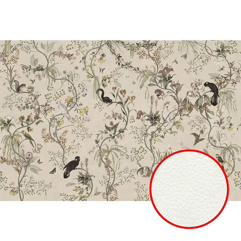 - Флизелиновая фреска размером 4,5 м x 3 м с рисунком птиц и цветов.