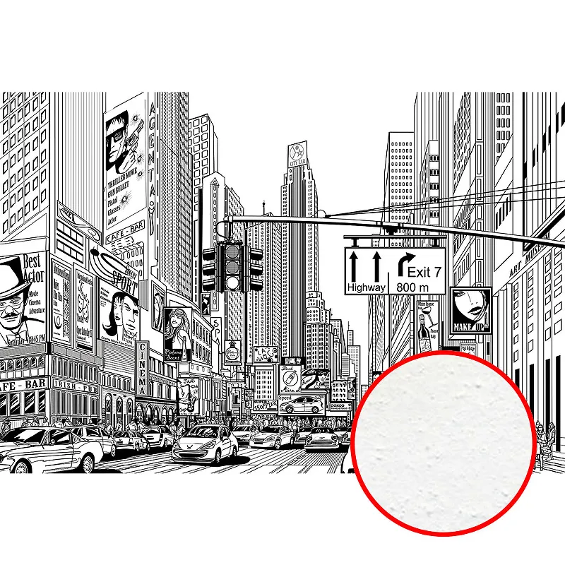 - Флизелиновая основа: Этот материал обеспечивает лёгкость монтажа фрески, она легко клеится и долго сохраняет свой первоначальный вид.