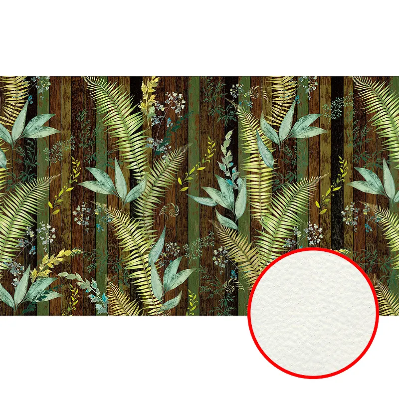 - Эстетичный рисунок "листья и полоса" в зелёно-коричневых тонах добавляет естественности и гармонии вашему дому.