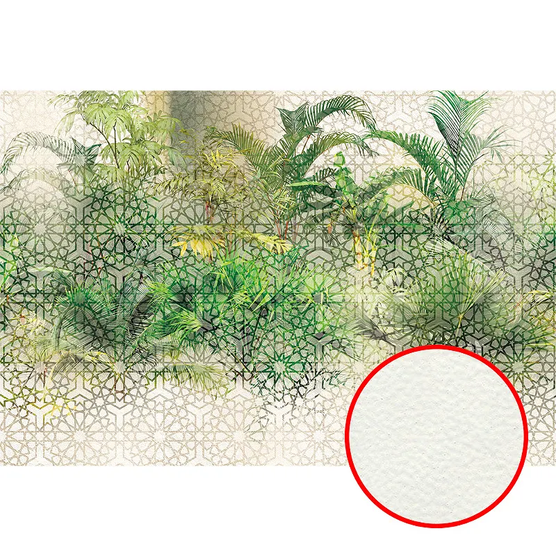Фреска Ortograf Oasis 32725 Фактура флок FLK Флизелин (4*2,7) Бежевый/Зеленый, Листья/Геометрия