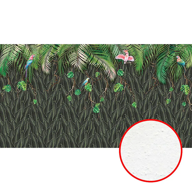 Фреска Ortograf Oasis 32735 Фактура бархат FX Флизелин (5*2,7) Зеленый/Черный, Листья/Птицы