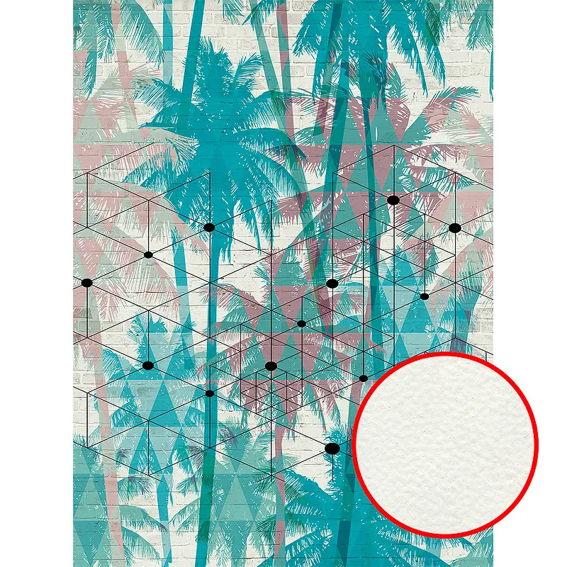 Фреска Ortograf Oasis 32773 Фактура флок FLK Флизелин (2*2,7) Синий/Серый/Розовый, Деревья/Геометрия