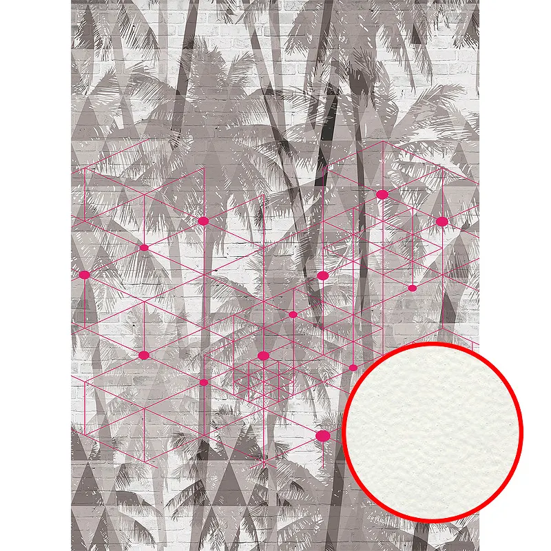 Фреска Ortograf Oasis 32774 Фактура флок FLK Флизелин (2*2,7) Серый/Розовый, Деревья/Геометрия