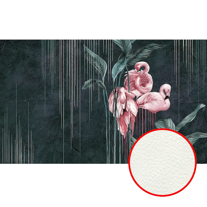 Фреска Ortograf Paradise 32252 Фактура флок FLK Флизелин (4,5*2,7) Черный/Зеленый/Розовый, Листья/Птицы