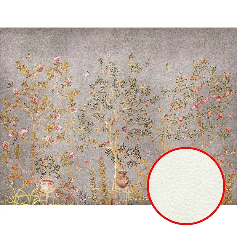 Фреска Ortograf Silver&Gold 32813 Фактура флок FLK Флизелин (3,6*2,7) Серый/Разноцветный, Деревья/Цветы/Птицы