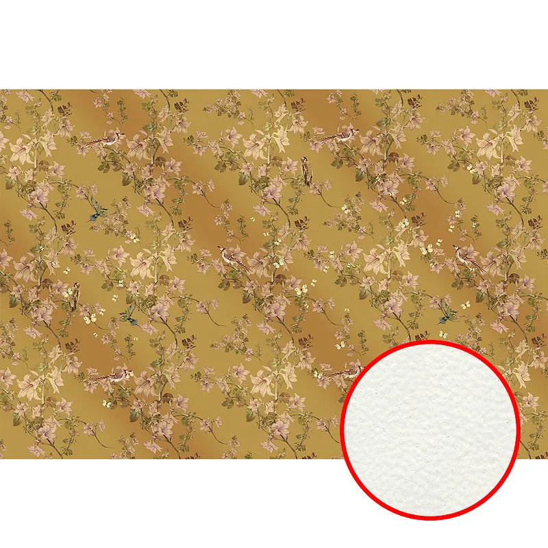 Преимущества Фреска Ortograf Silver&Gold 32818 Фактура флок FLK Флизелин (4*2,7) Золото/Разноцветный, Цветы/Птицы