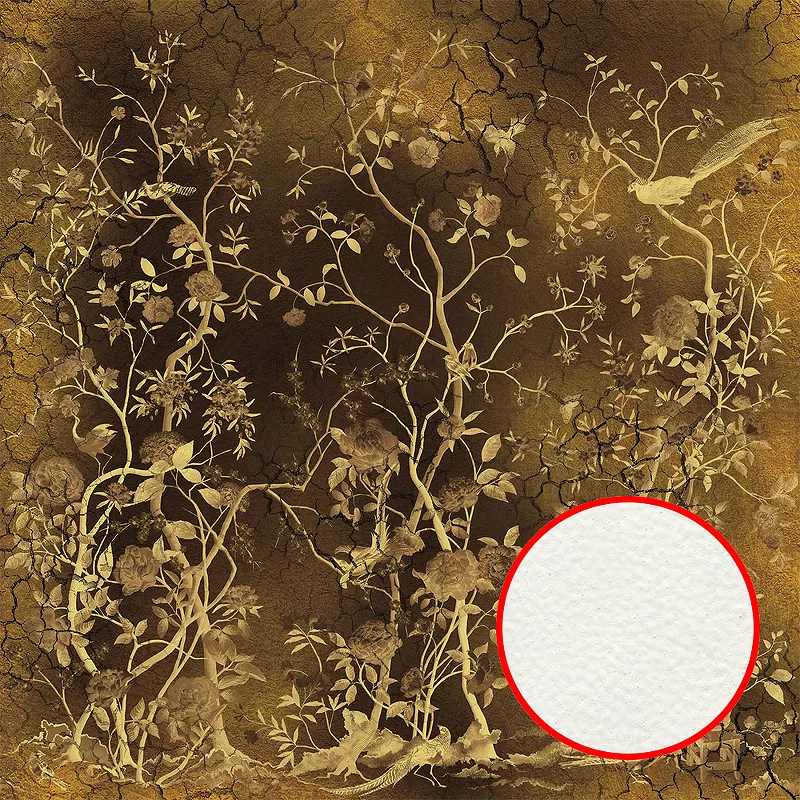 Фреска Ortograf Silver&Gold 32831 Фактура флок FLK Флизелин (2,7*2,7) Золото, Деревья/Цветы/Птицы