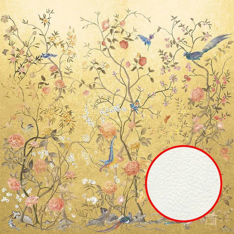 Фреска Ortograf Silver&Gold 32832 Фактура флок FLK Флизелин (2,7*2,7) Бежевый/Разноцветный, Деревья/Цветы/Птицы
