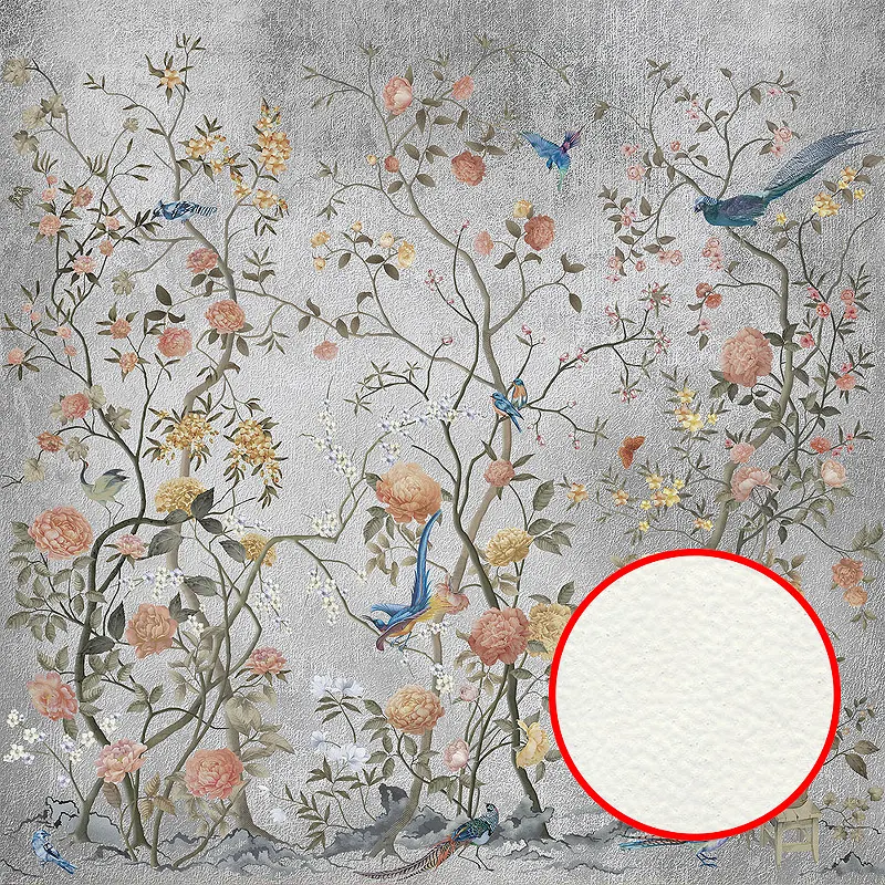 Фреска Ortograf Silver&Gold 32833 Фактура флок FLK Флизелин (2,7*2,7) Серебряный/Разноцветный, Деревья/Цветы/Птицы