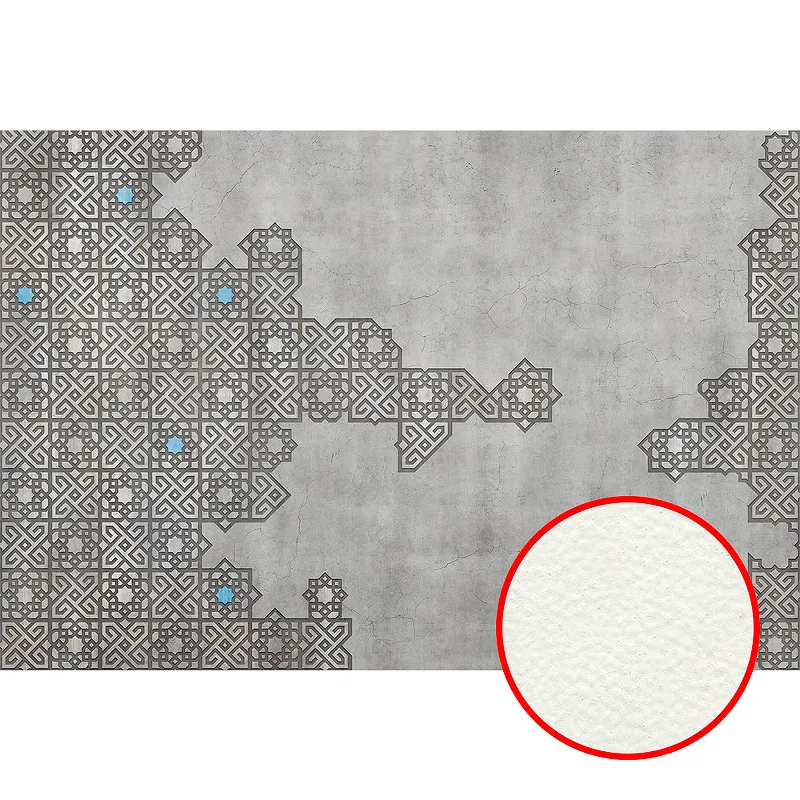 - Эстетичность и стиль: Серый цвет и орнаментальный рисунок фрески создают атмосферу уюта и элегантности в любом помещении.