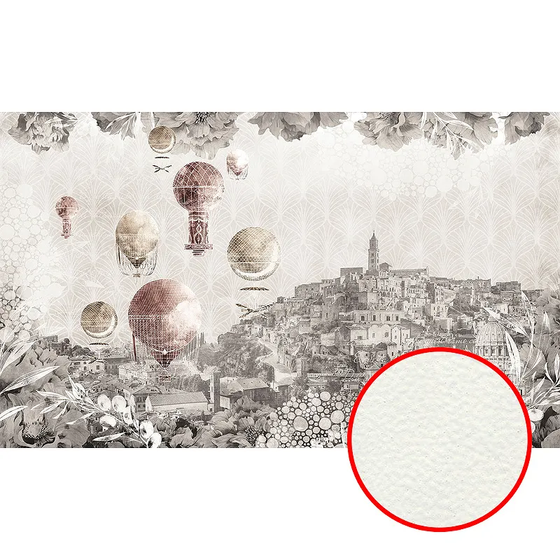 - Фреска серого цвета с рисунком "Город/Орнамент/Небо": универсальная палитра, которая гармонирует с любым стилем интерьера.