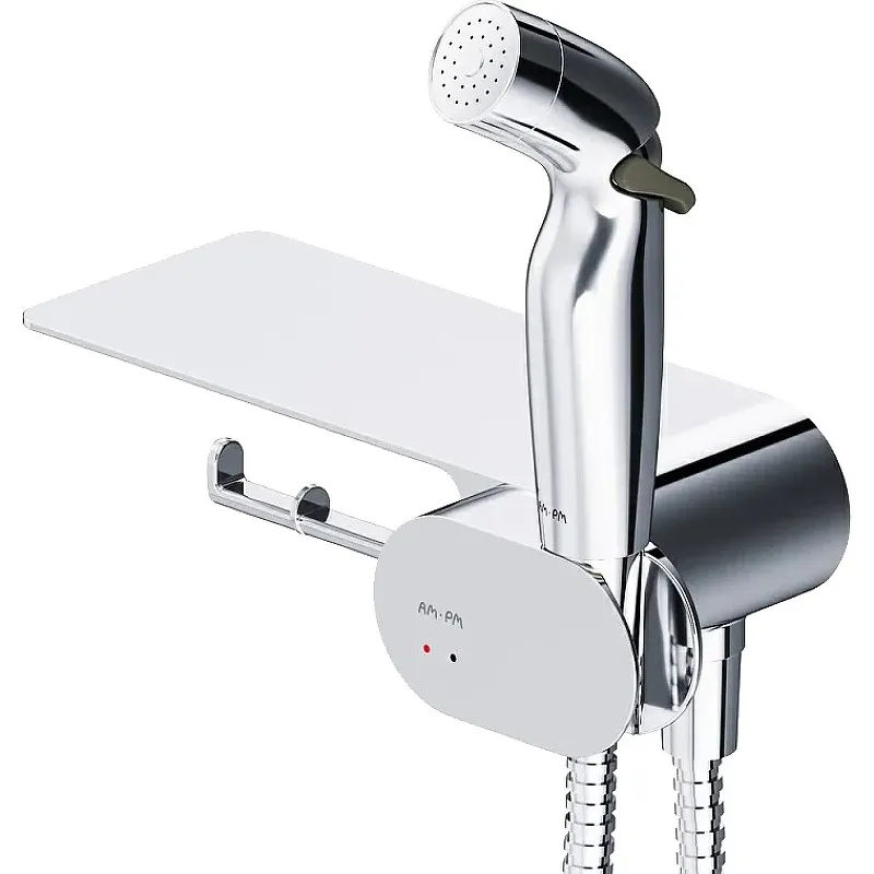 Гигиенический душ со смесителем AM.PM Like F0202600. Ультрамодный дизайн ручки придает смесителю дополнительную динамику и дарит непревзойденную легкость управления. Вы почувствуете это с первого прикосновения.Гигиенический душ со встраиваемым смесителем AM.PM Like F0202600 наделяет его простотой в управлении. Душ сделан из ABS-пластика, уменьшает шум от льющейся воды. Имеет хромированное покрытие, универсальный вариант для интерьера ванной или санузла. Предусмотрены силиконовые форсунки, они защищают от появления известкового налета, окисления и коррозии, легко поддаются очищению.Смеситель выполнен из латуни и имеет хромоникелевое покрытие, обладает антикоррозийными свойствами. Встроен керамический картридж, можно менять температурный режим воды и ее напор. Изделие шириной - 26,9 см, высотой - 23,3 см, длиной - 13,1 см. Общий вес составляет - 3 килограмма.Вы можете установить предмет самостоятельно, в инструкции все подробно изложено. В комплектации есть гигиеническая лейка, полка с держателем, смеситель, держатель и шланг для душа, розетка (декоративная).Производство: Германия.Гарантийный срок: 10 лет.Гигиенический душ: Изготовлен из ABS-пластика. Многослойное хромникелевое покрытие устойчиво к царапинам и потускнению, сохраняет первоначальный цвет и блеск на протяжении всего срока службы. Силиконовые форсунки с защитой от известкового налета. Фиксированный настенный держатель. Смеситель: Материал: латунь. Хромоникелевое покрытие. Прогрессивный картридж. В комплекте поставки: Гигиеническая лейка. Полка с держателем для гигиенической лейки. Смеситель для душа. Настенный держатель. Шланг для душа (длина: 1,5 м). Декоративная розетка.