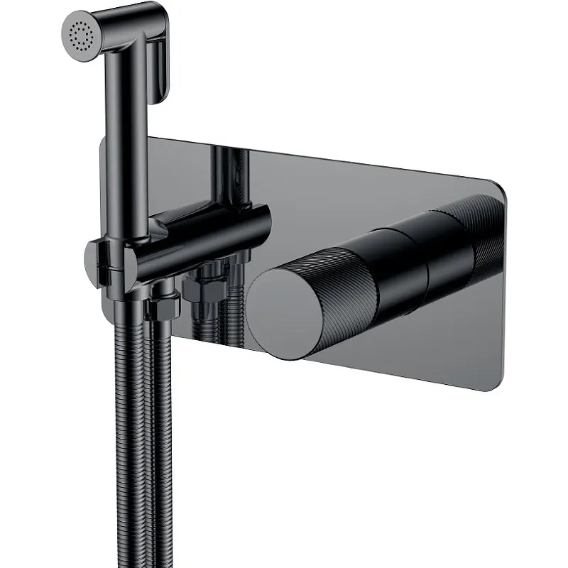 Гигиенический душ со смесителем Boheme Stick 127-SGM.4.Характеристики: Цвет: оружейная сталь глянцевая. Материал: латунь. Дизайн ручки: Spirale. Механизм: керамический картридж. Управление: однорычажное. Встроенный держатель для лейки. Отверстия для монтажа: 1. Стандарт подключения: G 1/2. Монтаж: встраиваемый. В комплекте поставки: Смеситель (внешняя и внутренняя часть). Гигиенический душ со шлангом.