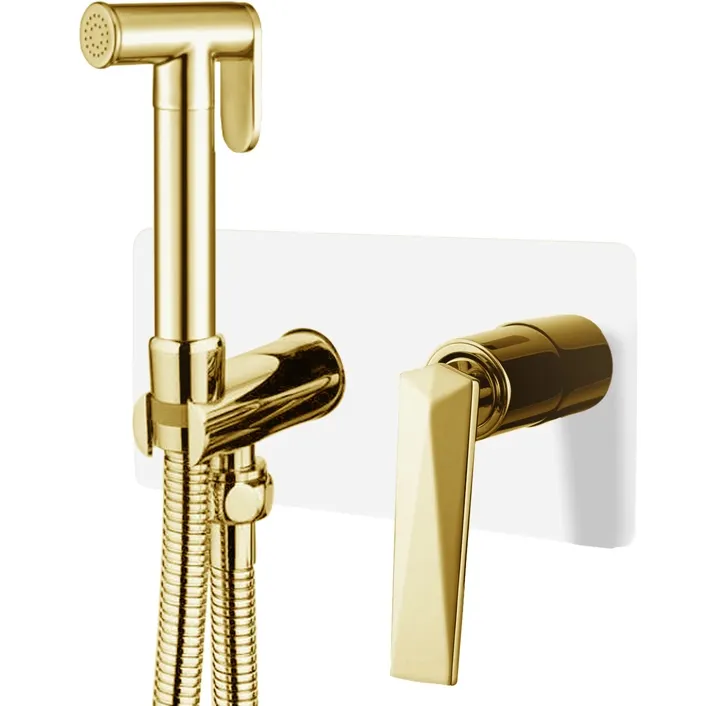 Гигиенический душ со смесителем Boheme Venturo 387-W.Цвет: золото, белый. Материал: латунь. Механизм: керамический картридж. Управление: однорычажное. Стандарт подводки: G 1/2. Гигиенический душ с одним режимом. Диаметр гигиенического душа: 21,5 мм. Монтаж: на стену.В комплекте поставки:смеситель; гигиенический душ; душевой шланг; гибкая подводка G 1/2; крепежный комплект.