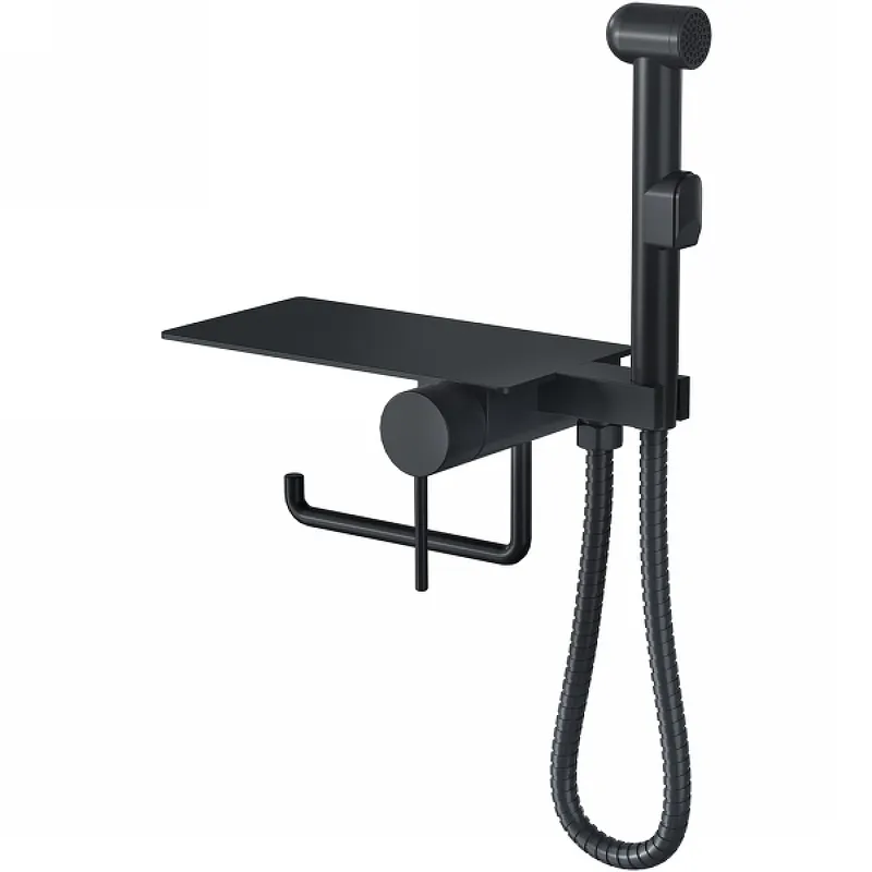 Гигиенический душ со смесителем Bronze de Luxe Scandi 708B — идеальное решение для современных ванных комнат. Данную модель отличает стильный черный матовый цвет и удобство в использовании. Гигиенический душ с полкой и держателем туалетной бумаги станет незаменимым помощником в вашем доме.