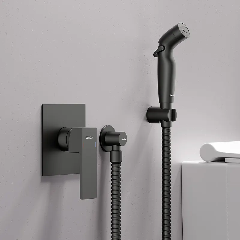 - Эстетичный дизайн: Гигиенический душ со смесителем выполнен в трендовом черном матовом цвете, который добавляет стиль и элегантность.