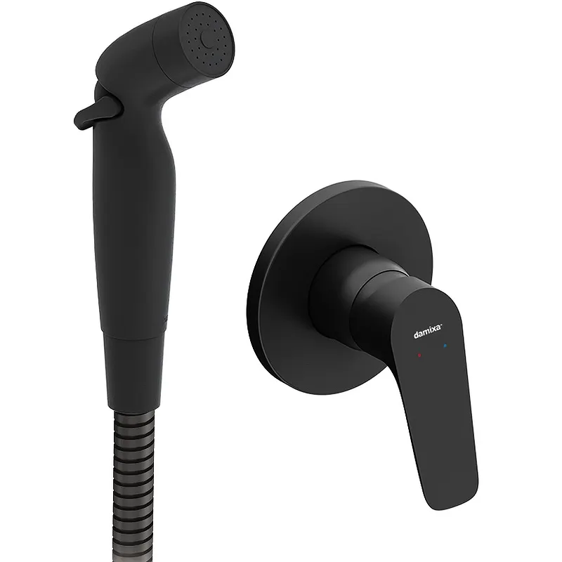 Гигиенический душ со смесителем Damixa Jupiter 777510300.Характеристики: Цвет: черный матовый. Материал: латунь. Управление: однорычажное. Механизм: керамический картридж 35 мм. 1 режим гигиенического душа: Spray. Размер ручного душа: 32 мм. Металлический шланг длиной 1200 мм. Шланг с защитой от перекручивания. Расход воды: 3-6 л/мин. Стандарт подводки: G1/2. Количество монтажных отверстий: 1. Монтаж: встраиваемый. В комплекте поставки: Смеситель (внешняя и внутренняя часть). Лейка гигиенического душа. Шланг. Держатель лейки Инструкция.