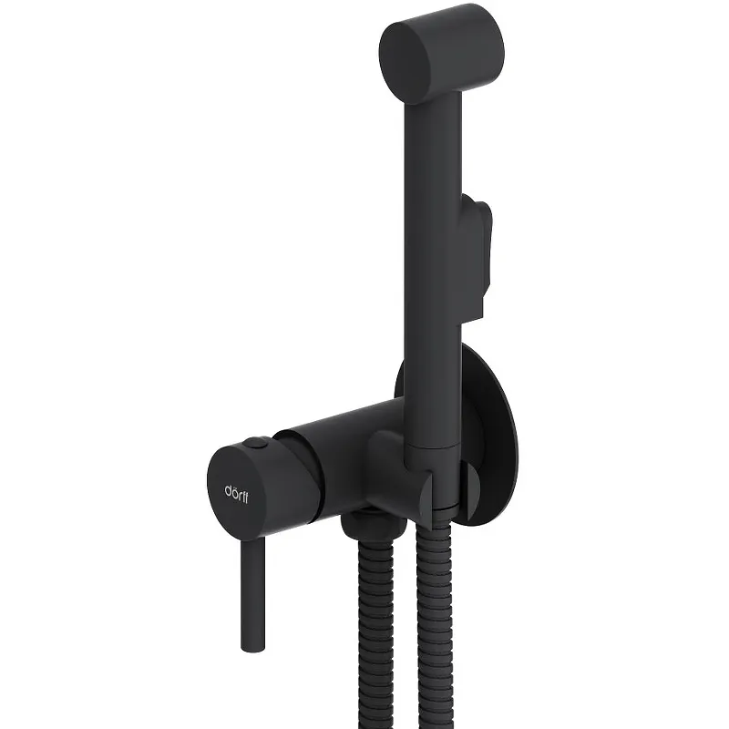 Гигиенический душ со смесителем Dorff Logic D3075000BL.Характеристики: Материал: латунь. Цвет: черный. Декоративные части: декоративная тарелка. С механизмом скрытого монтажа. С керамическим картриджем. Длина шланга: 1500 мм. Режимы душа: 1 режим гигиенического душа (Spray). Защита шланга от перекручивания. С системой Twistless. Исполнение шланга: ребристый. Размер ручного душа: 32 мм. Размер лейки: 172х22х22 мм. Стандарт подводки: 1/2. Тип монтажа: внутренний (скрытый) монтаж. Тип управления: однозахватный. Количество монтажных отверстий: 1. Совместим с проточным водонагревателем. В комплекте поставки: Смеситель (внешняя и внутренняя часть). Ручной гигиенический душ. Держатель лейки. Душевой шланг. Комплект креплений.