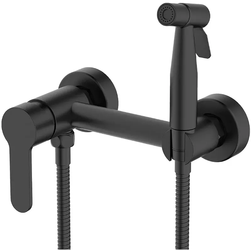 - Современный стиль гигиенического душа: Черный матовый цвет и минималистичный дизайн придают ванной комнате элегантный и стильный вид.