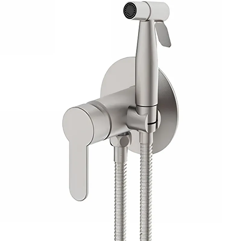 Гигиенический душ со смесителем Frap H801 F72801 Сатин — идеальное решение для современных ванных комнат. Этот гигиенический душ в современном стиле изготовлен из нержавеющей стали и оснащён однорычажным управлением, что обеспечивает удобство и долговечность использования. Благодаря встраиваемому монтажу, он станет незаменимым элементом вашего интерьера, сочетая эстетичность и функциональность.
