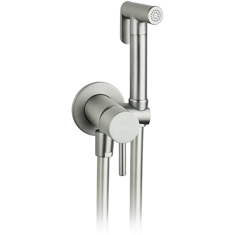 Гигиенический душ со смесителем Giulini Futuro FSH25NKO.Характеристики: Цвет: никель матовый. Материал: латунь. Форма лейки: круглая. Количество режимов: 1. Смеситель: однорычажный. Механизм: керамический картридж. Шланг в двойной металической оплетке. Длина шланга: 120 см. Монтаж: встраиваемый. Стандарт подводки: 1/2. В комплекте поставки: Смеситель (внешняя и внутренняя часть). Гигиенический душ. Душевой шланг. Шланговое подключение с держателем для душа.