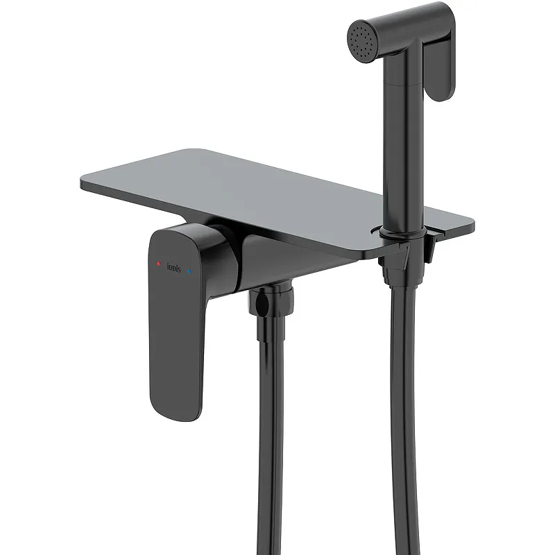 Гигиенический душ со смесителем Iddis Axes AXEBLSHi08.Характеристики: Цвет: черный матовый. Материал: латунь ЛЦ40C (ГОСТ 17711-93). Покрытие: электрофоретическое. С полочкой из латуни. Тип управление: однорычажное. Керамический картридж 25 мм. Количество режимов струи: 1. Душевой шланг в оплётке из нержавеющей стали. Длина шланга: 1.2 м. Стандарт подводки: G 1/2. Подключение: жесткая подводка. Монтаж: встраиваемый. В комплекте поставки: Смеситель (внешняя и внутренняя часть). Шланг для душа. Гигиенический душ. Инструкция.