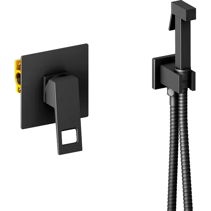 - Полная комплектация: В комплект входят гигиеническая лейка, душевой шланг и встраиваемый смеситель, что делает покупку особенно выгодной.