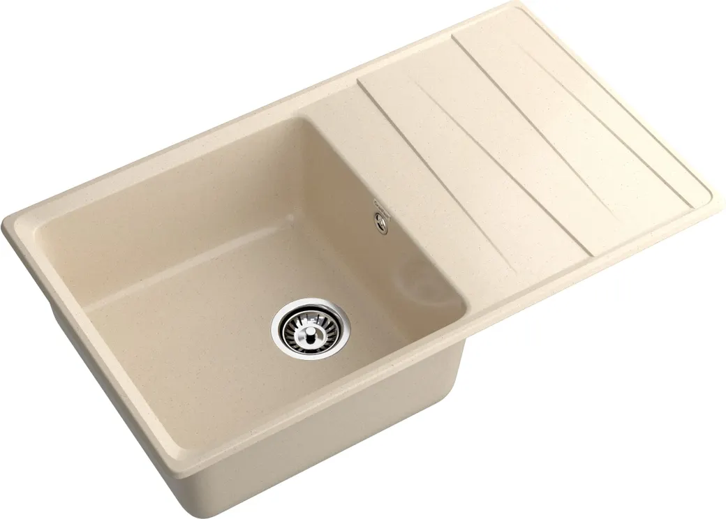 - Мраморная мойка: материал обеспечивает надежность и долговечность, устойчив к царапинам и повреждениям.
