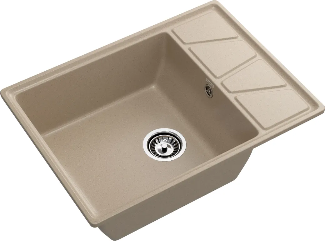 - Песочный цвет мойки гармонично вписывается в любой интерьер, придавая кухне современный вид.