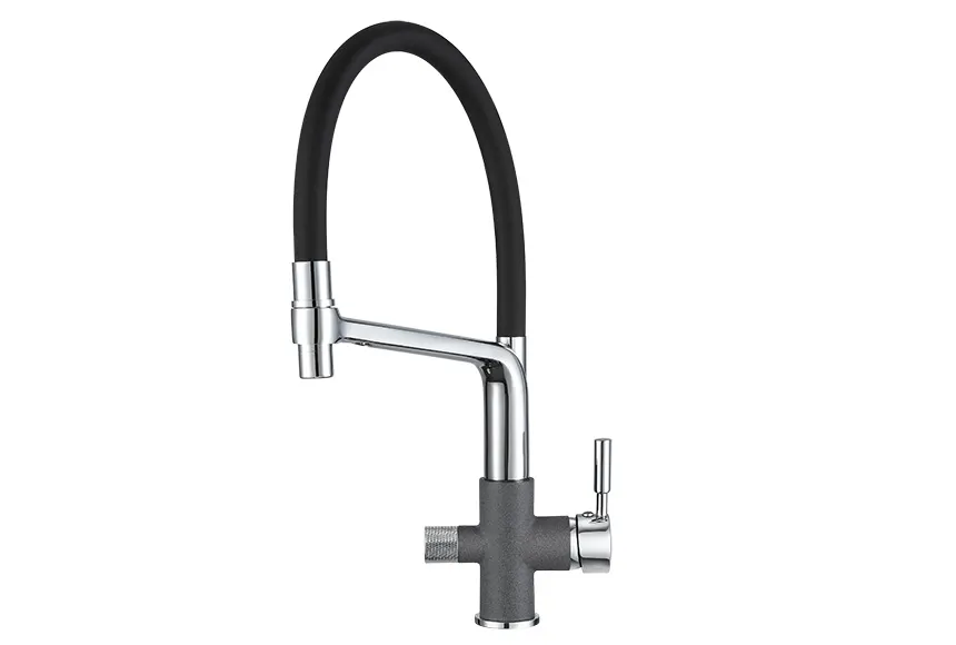 - Удобство и гибкость: Высокий излив с гибким шлангом позволяет легко наполнять большие емкости и мыть посуду различных размеров.