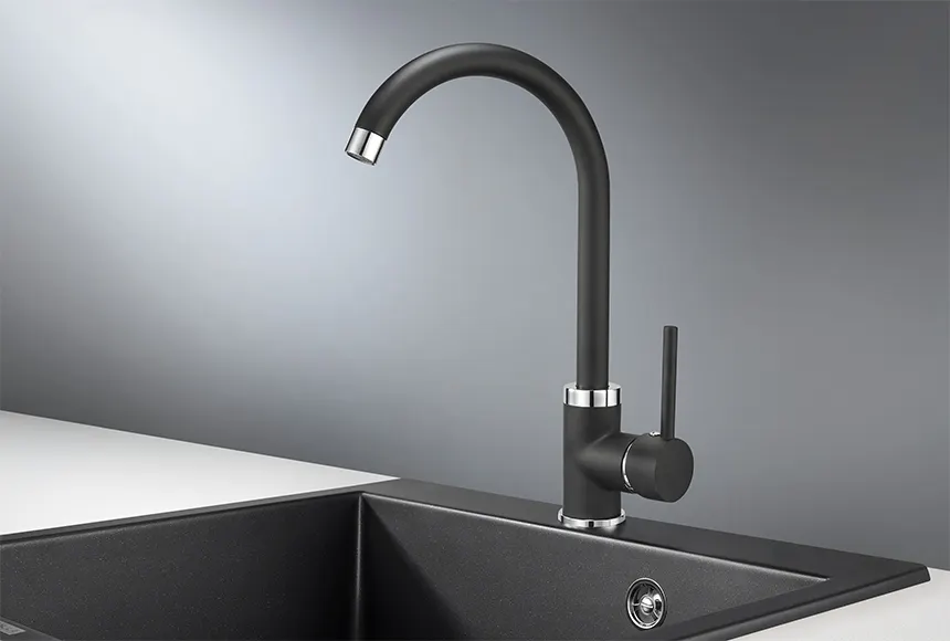 - Комфорт в использовании: Высокий излив облегчает мытье крупной посуды и позволяет наполнять большие емкости водой.