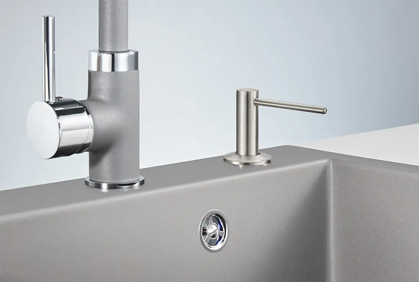 Дозатор для кухонной мойки Granula изготовлен из высококачественных материалов: колба выполнена из пластика, дозатор - из нержавеющей стали. С легкостью устанавливается с использованием коронки 25-35 мм.