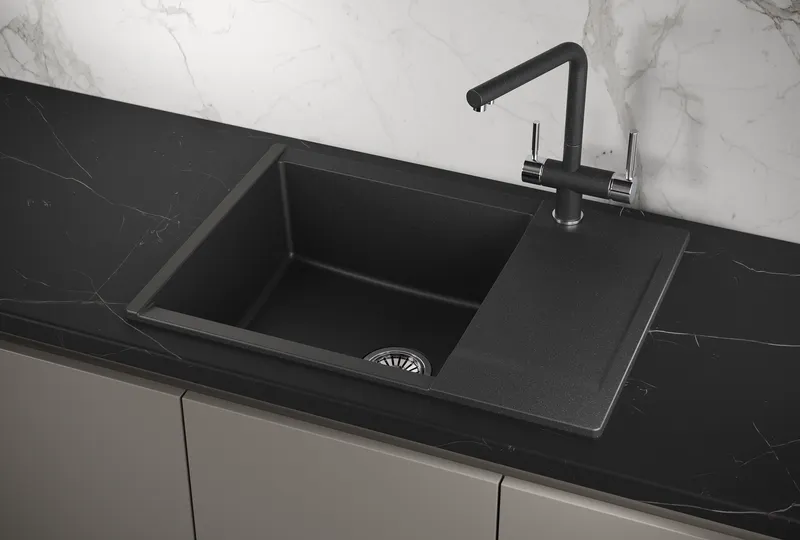 - Кухонная мойка из кварца: Обеспечивает стойкость к царапинам и ударам, гарантируя долговечность.
