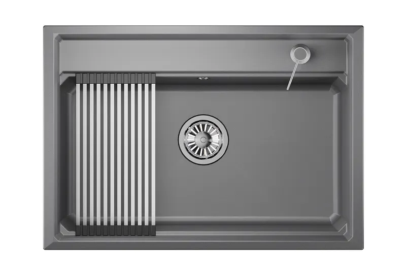 - Высокое качество материала: Кварцевая кухонная мойка устойчива к царапинам и высоким температурам, что увеличивает срок службы.
