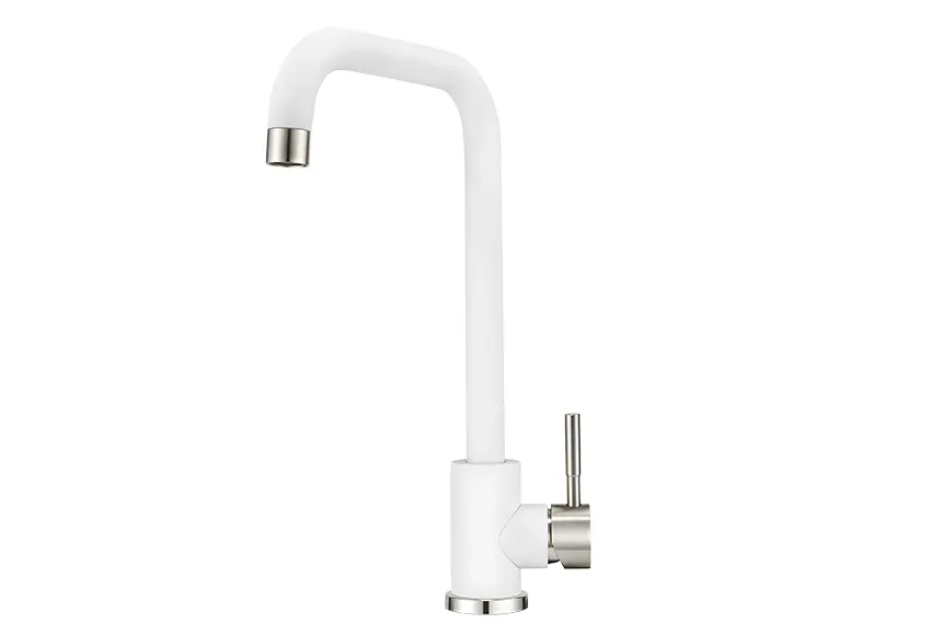 - Эстетика и стиль: Белый цвет смесителя гармонично вписывается в интерьер, создавая эффектный акцент на кухне.