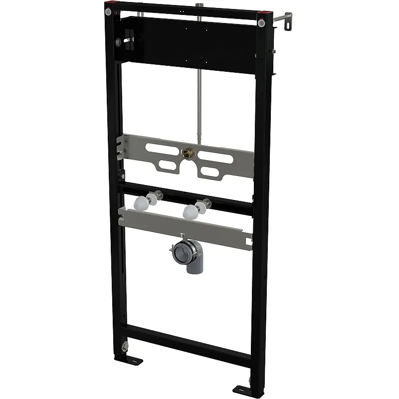 Инсталляция AlcaPlast A107S/1120 для писсуара и сенсорного устройства.Характеристики: Цвет рамы: черный. Материал: металл обработанный порошковой краской. Габариты (ШхВхГ): 510х1320х200 мм. Водоснабжение с возможностью регулировки от центра 0–125 мм. Сток с возможностью регулировки от центра 0–110 мм. Регулируемые по высоте монтажные перекладины. Регулируемые выдвижные ножки в диапазоне 0–200 мм с тормозной системой. Универсальная рама – совместимая с другими типами сенсорных датчиков. Обрамление двусоставное – можно установить дополнительно. Установка: в несущую стену или гипсокартонную конструкцию. В комплекте поставки: Монтажная рама. Монтажный набор: шуруп диаметром 8×60 – шт., дюбель диаметром 12 – 4 шт. Монтажный набор для крепления писсуара: болт M10 – 2 шт. Колпаки для закрытия гаек. Резьбовое соединение для подключения воды: G1/2–G1/2. Стоковое колено HT50 с прокладкой. Консоль для закрепления датчика. Инструкция.