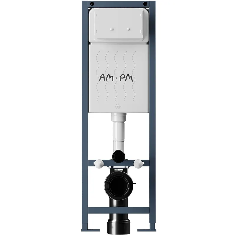 Инсталляция AM.PM ErgoFit I012711 для унитаза.Максимально полный комплект поставки, включающий все необходимые крепления, патрубки, звукоизолирующую прокладку. Экономия пространства благодаря узкой раме – 352 мм шириной. Подходит даже для самых малогабаритных ванных комнат. Заливной клапан с низким уровнем шума - Класс II, согласно европейского стандарта EN 14124. Подходит для унитазов любых размеров. Высокая прочность и износостойкость. Увеличенная толщина профиля, двойные прокладки слива и подачи воды Характеристики: Цвет рамы: синий. Материал: нержавеющая сталь, ABS-пластик. Размеры (ШхВхГ): 352х1320х333 мм. Монтажная высота: 1060-1320 мм. Давление смыва: 0.02 - 1.05 МПа. Объем смыва: 3/6 л. Объем смывного бачка: 9 л. Подвод воды: сзади сверху. Угловой запорный вентиль 1/2. Максимальная нагрузка: до 400 кг. Шумоизоляция. Заливной клапан с низким уровнем шума - Класс II, согласно европейского стандарта EN 14124. Межосевое расстояние под крепежные шпильки: 180-230 мм. Установка: в капитальную стену и в пол. В комплекте поставки: Инсталляция: монтажная рама; арматура; бачок с системой смыва; монтажная коробка; крепежные шпильки; крепление для унитаза; система смыва; элементы крепления к стене; патрубки для подключения к унитазу; фановый отвод; звукоизолирующая прокладка. Набор креплений. Инструкция.