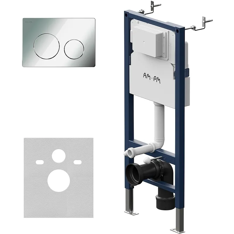 Инсталляция AM.PM PrimeFit I012709.0151 для подвесного унитаза с клавишей смыва Хром глянцевый.Характеристики: Цвет рамы: синий. Материал: нержавеющая сталь, ABS-пластик. Тип инсталляции: для подвесного унитаза. Размеры (ШхВхГ): 500х1230х200 мм. Монтажная высота: 1130-1230 мм. Монтажная глубина: 150-200 мм. Давление смыва: 0.02 - 1.05 МПа. Межосевое расстояние под крепежные шпильки: 180-230 мм. Объем смыва: 3/6 л. Объем смывного бачка: 9 л. Подвод воды: сзади сверху. Угловой запорный вентиль 1/2. Максимальная нагрузка: до 400 кг. Шумоизоляция. Заливной клапан с низким уровнем шума - Класс II, согласно европейского стандарта EN 14124. Установка: в капитальную стену и в пол. Клавиша смыва: Цвет: хром глянцевый. Материал: ABS-пластик. Размеры (ШхВхГ): 240х162х10 мм. Режим слива воды: две кнопки (режим эконом). Управление: механическое. В комплекте поставки: Инсталляция: монтажная рама; арматура; бачок с системой смыва; монтажная коробка; крепежные шпильки; крепление для унитаза; система смыва; элементы крепления к стене; патрубки для подключения к унитазу; звукоизолирующая прокладка. Клавиша смыва. Набор креплений. Инструкция.