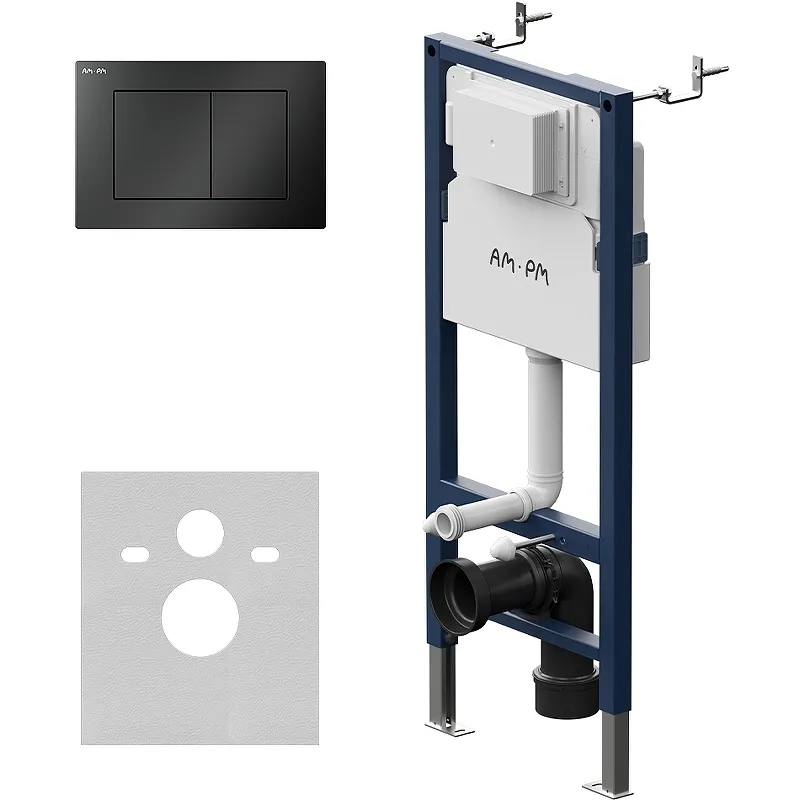 Инсталляция AM.PM PrimeFit I012709.0238 для подвесного унитаза.Максимально полный комплект поставки, включающий все необходимые крепления, патрубки, звукоизолирующую прокладку. Экономия пространства благодаря узкому бачку – 120 мм глубиной. Заливной клапан с низким уровнем шума - Класс II, согласно европейского стандарта EN 14124. Выдерживает нагрузку до 400 кг. Подходит для унитазов любых размеров. Высокая прочность и износостойкость. Увеличенная толщина профиля, армированный шланг подачи воды, двойная прокладки слива и подачи воды.Характеристики: Цвет рамы: синий. Материал: нержавеющая сталь, ABS-пластик. Размеры (ШхВхГ): 500х1230х200 мм. Монтажная высота: 1130-1230 мм. Монтажная глубина: 150-200 мм. Давление смыва: 0.02 - 1.05 МПа. Межосевое расстояние под крепежные шпильки: 180-230 мм. Объем смыва: 3/6 л. Объем смывного бачка: 9 л. Подвод воды: сзади сверху. Угловой запорный вентиль 1/2. Максимальная нагрузка: до 400 кг. Шумоизоляция. Заливной клапан с низким уровнем шума - Класс II, согласно европейского стандарта EN 14124. Установка: в капитальную стену и в пол. Клавиша смыва: Цвет: черный матовый. Материал: ABS-пластик. Размеры (ШхВхГ): 240х162х10 мм. Режим слива воды: две кнопки (режим эконом). Управление: механическое. В комплекте поставки: Инсталляция: монтажная рама; арматура; бачок с системой смыва; монтажная коробка; крепежные шпильки; крепление для унитаза; система смыва; элементы крепления к стене; патрубки для подключения к унитазу; звукоизолирующая прокладка. Клавиша смыва PrimeFit S. Набор креплений. Инструкция.