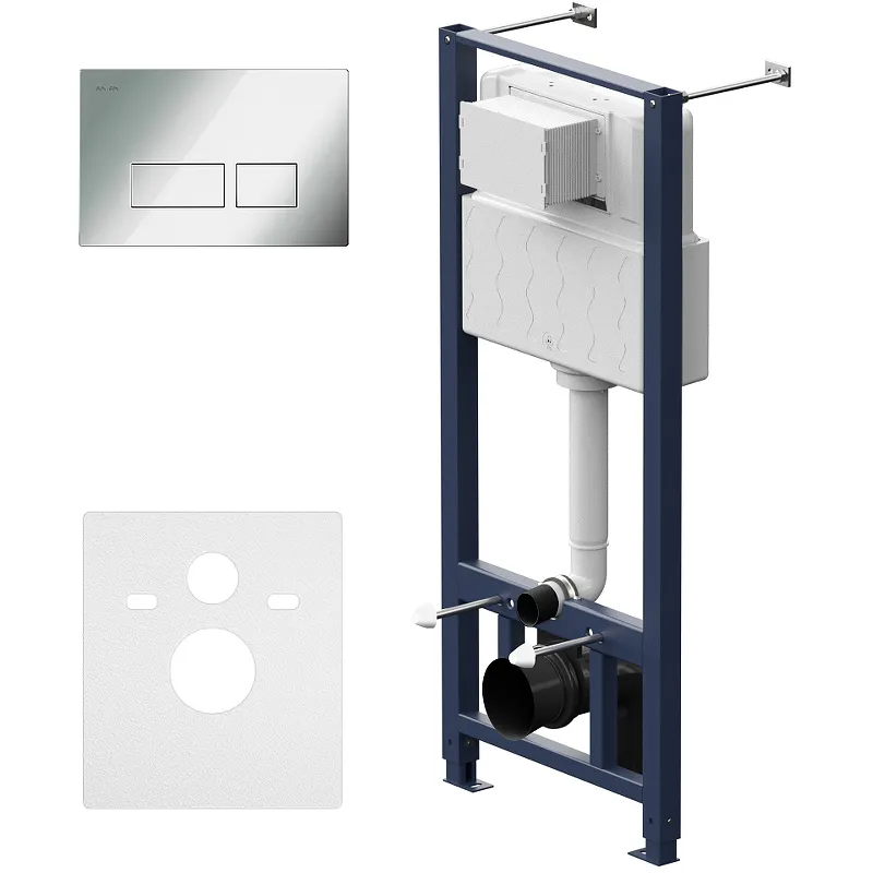 - Качество и надежность: Инсталляция для подвесного унитаза выполнена из нержавеющей стали и пластика, что гарантирует долговечность конструкции.