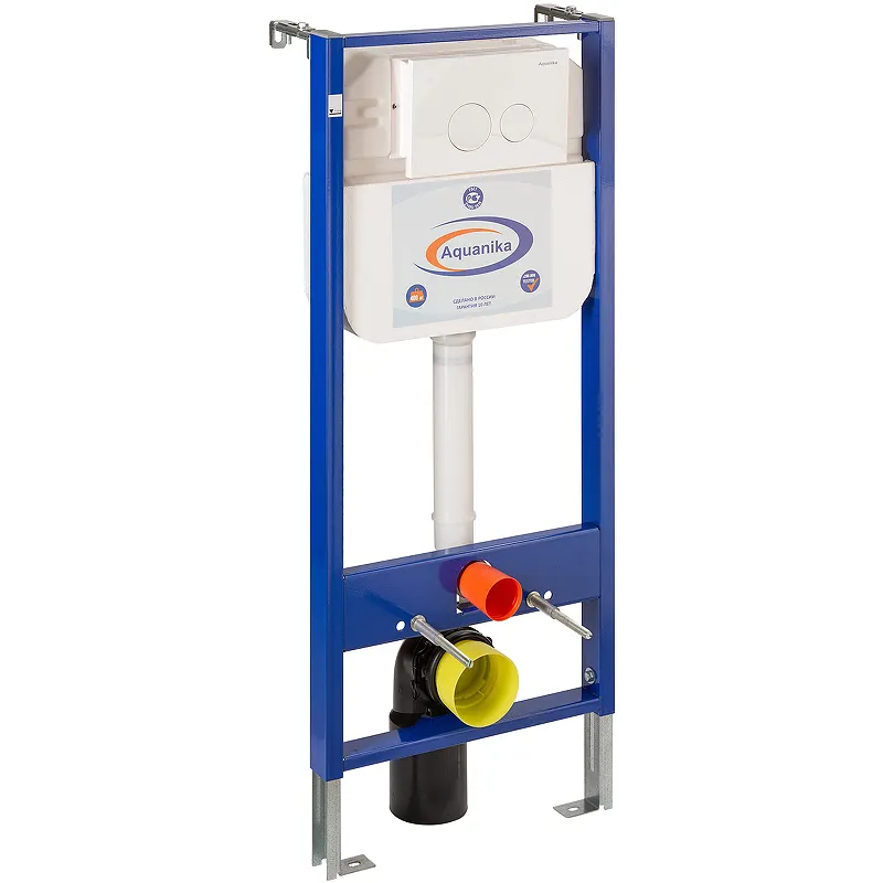 Инсталляция Aquanika Basic 10.702.450.02.05W для унитаза с Белой клавишей смыва.Характеристики:Инсталляция: Цвет рамы: синий. Материал рамы: сталь с покрытием порошковой эмалью. Стальной профиль: 50x25 мм толщиной 2 мм. Вертикальные ребра жесткости в конструкции рамы. Материал бачка: полиэтилен низкого давления (ПНД) с защитой от конденсата. Цельно-выдувной бесшовный бачок. Объем бачка: 7.5 л. Заливной клапан с низким уровнем шума - менее 20 Дб. Размеры (ВxШ): 1130-450 мм. Межосевое расстояние под крепежные шпильки: 230 и 180 мм. Максимальная нагрузка: 400 кг. Монтаж: в капитальную стену, пол. Клавиша смыва: Цвет: белый. Материал: ABS-пластик. Размеры (ШхВхГ): 244х160х20 мм. Режим слива воды: двухрежимный. Управление: механическое. В комплекте поставки: Инсталляция. Крепеж. Шумоизоляция. Клавиша смыва.