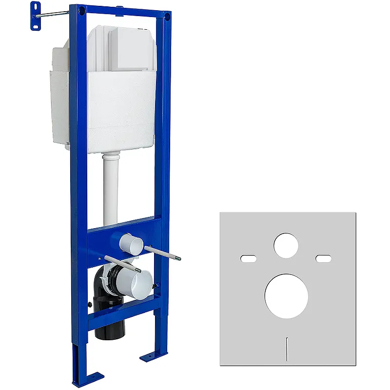 Инсталляция Berges Atom 040330 для унитаза.Характеристики: Цвет: синий. Материал: латунь, полипропилен. Стальная рама с антикоррозийным покрытием. Размер (ШхВхГ): 410х1365х275 мм. Регулировка по высоте. Подвод воды: сверху. Направление выпуска: горизонтальное. Стандарт подключения воды: G 1/2. Расчетная нагрузка: 400 кг. Межосевое расстояние под крепежные шпильки унитаза: 180 и 230 мм. Бачок с функцией шумоподавления. Эконом слив: 3 л. Полный слив: от 5.5 до 8.5 л. Монтаж: к стене. В комплекте поставки: Инсталляция. Смывной бачок. Шумоизолирующая прокладка. Полный комплект патрубков. Лекала для монтажа отверстий.