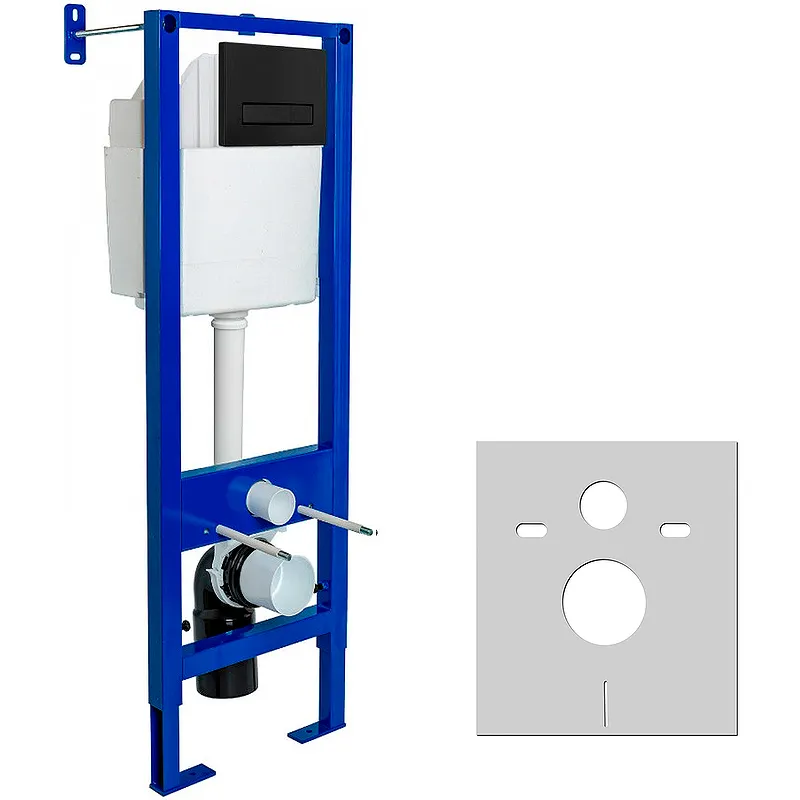Инсталляция Berges Wasserhaus Atom 410 040340 для унитаза.Характеристики: Инсталляция : Материал: латунь, полипропилен С регулировкой по высоте. Расчетная нагрузка: 400 кг. Стальная рама с антикоррозийным покрытием. Межосевое расстояние под крепежные шпильки унитаза: 18 и 23 см. Бачок с функцией шумоподавления. Эконом слив: 3л. Полный слив: от 5,5 до 8,5л. Монтаж: к стене. Направление выпуска: горизонтальное. Стандарт подключения воды: G 1/2. Клавиша смыва Soft Touch: Цвет клавиши: черный. Форма кнопок: прямоугольная. Габариты (ШхВхД): 24,7x16,5х1,8 см. Материал: пластик. Управление: механическое. Количество режимов смыва: 2. В комплекте поставки: Инсталляция. Смывной бачок. Шумоизолирующая прокладка. Кнопка смыва. Комплект установки.