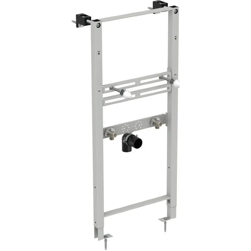Инсталляция Ideal Standard Prosys R010267 для раковины.Характеристики: Цвет: серый. Материал: сталь. Рама устойчива к коррозии и царапинам. Габариты (ШхВхГ): 500х1150х170 мм. Регулируемая высота от 0 до 300 мм. Рама тестирована нагрузкой 150 кг. Регулируемые монтажные пластины. Легкая и быстрая установка при помощи системы EasyFiх system. Рама для монтажа подвесной раковины (с отверстием под смеситель). Метод крепления: перед капитальной стеной или между двумя гипсокартонными стенами. В комплекте поставки: Монтажная рама. Крепежи для раковины. Крепежи для рамы. Сливной патрубок. Подключение для воды G 1/2-2 шт.