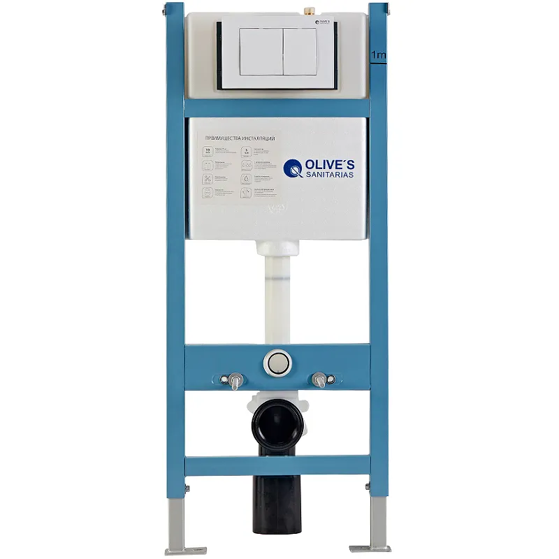 Инсталляция Olive's M48010-PR412W для унитаза.Характеристики:Инсталляция:Цвет: голубой. Материал: сталь. Тип управления: механический. Двух режимная сливная арматура: 3/6 л. Ультратонкий бачок глубиной 10 см. Теплоизоляция смывного бачка препятствует образованию конденсата. Подвод воды: сверху. Максимальная нагрузка: 400 кг. Ножки регулируются по высоте от 0 до 35 см и могут быть установлены в 4 положениях. Внутренний / внешний диаметр выходной трубы: 90/110 мм. Межосевое между шпильками: 180/230 мм. Размеры (ШхВхГ): 500х1419х150 мм. Монтаж: в капитальную стену. Клавиша смыва:Цвет: белый матовый. Материал: ABS-пластик. Конструкция: двойной смыв. Управление: механическое. Размеры (ШхВхГ): 236x152x32 мм. В комплекте поставки: Инсталляция. Клавиша смыва. Комплект креплений.