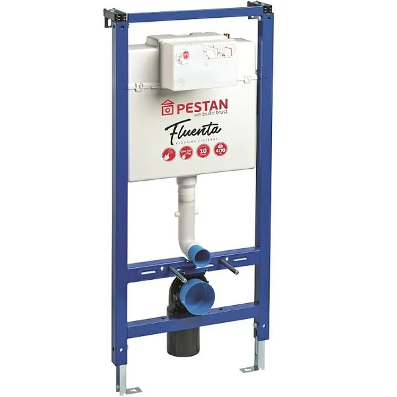 Инсталляция Pestan Fluenta 40006356 для унитаза с бачком скрытого монтажа.Характеристики:Монтажная рама: Для подвесных унитазов. Габариты (ШхВ): 55х115 см. Монтажная глубина: 15-20 см. Опорная рама из профилей 4x4 см. Рама защищена порошковой окраской. Регулируемые опорные ножки: от 0 до 20 см. Универсальные крепления для монтажа непосредственно к стене, в том числе и угловой монтаж. Тип крепления унитаза: шпильки. Межосевое расстояние: 18 или 23 см. Тихий заправочный клапан HDV. Бачок: Подключение: верхняя средняя / правая сторона. Объем бачка: 9 л. Большой смыв: 6/9 л. Малый смыв: 3/4.5 л. Бачок скрытого монтажа, полностью герметизированный от попадания конденсата. В комплекте поставки: